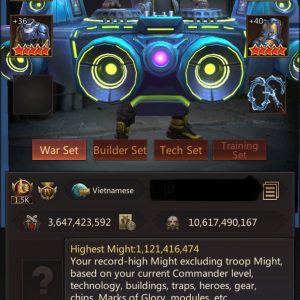 HQ42 | Shooter Base | 3,647B Might | 1,121B Highest Might | March Size 647,500 | Solo Lair 55 (74%) | Tickets 21 | ID952 | Price: $4,500