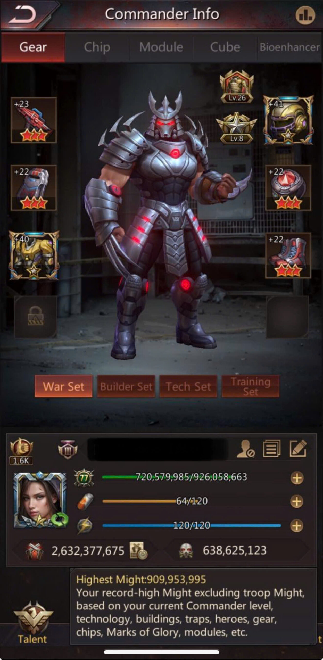 ✅ Highest Might: 909M