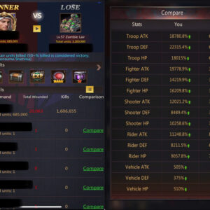 HQ44 | Fighter Base | 5,724B Might | 1,524B Highest Might | March Size 685,000 | Solo Lair 57 (50%) | Tickets 20 | ID753 | Price: $13,000