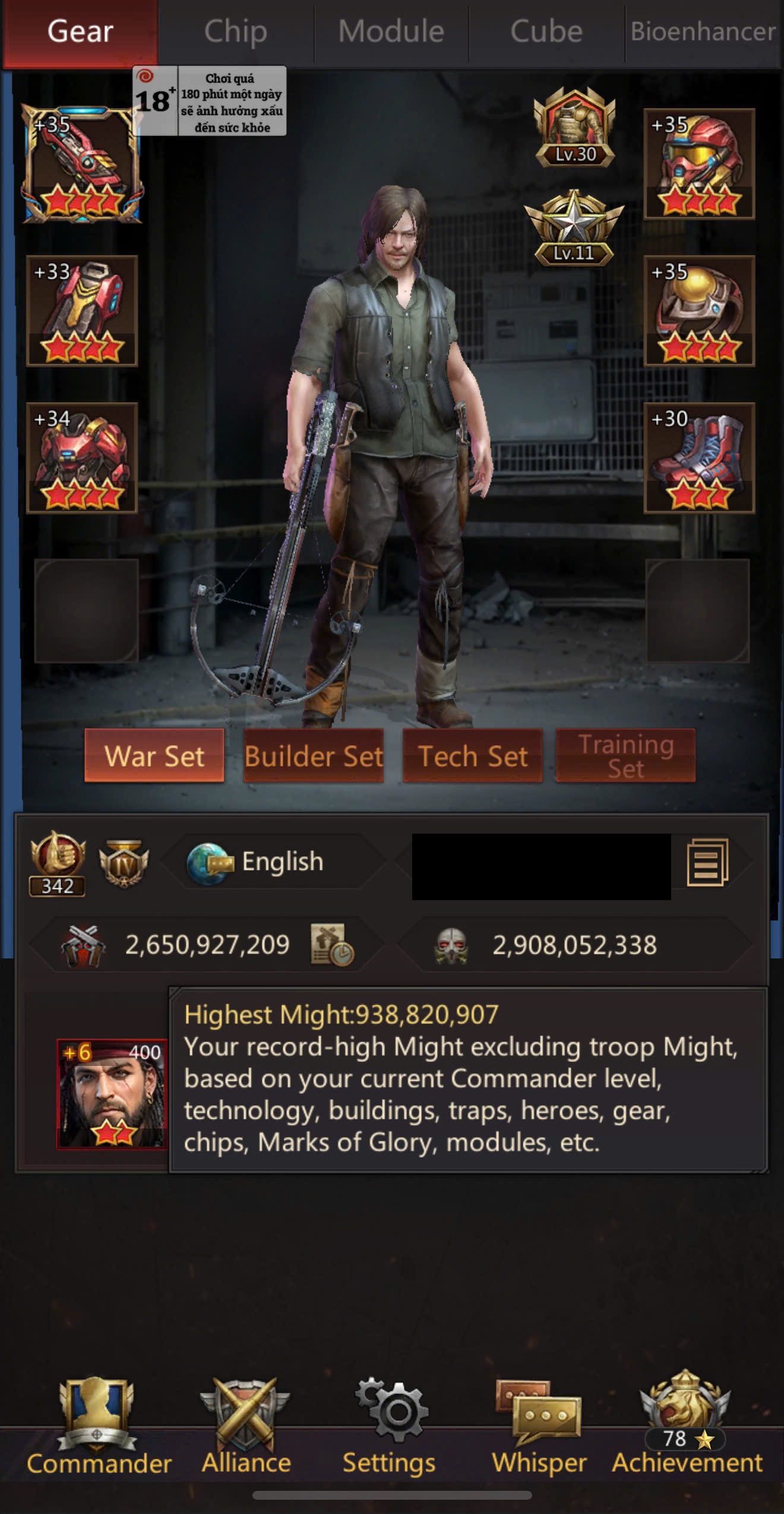 ✅ Highest Might: 938M