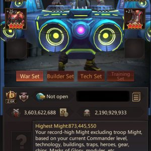 HQ42 (43 Ready) | Rider Base | 3,603B Might | 873M Highest Might | March Size 489,500 | Solo Lair 51 (57%) | Tickets 100 | ID815 | Price: $2,300