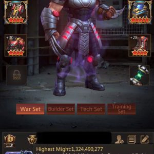 HQ43 | Rider Base | 5,256B Might | 1,234B Highest Might | March Size 693,000 | Solo Lair 56 (56%) | Tickets 70 | ID860 | Price: $8,500