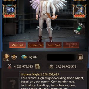 HQ42 | Shooter Base | 4,522B Might | 1,320B Highest Might | March Size 655,000 | Solo Lair 55 (75%) | Tickets 55 | ID888 | Price: $8,000