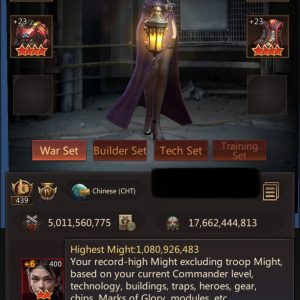 HQ42 | Rider Base | 5,011B Might | 1,080B Highest Might | March Size 633,500 | Solo Lair 55 (50%) | Tickets 95 | ID919 | Price: $3,500